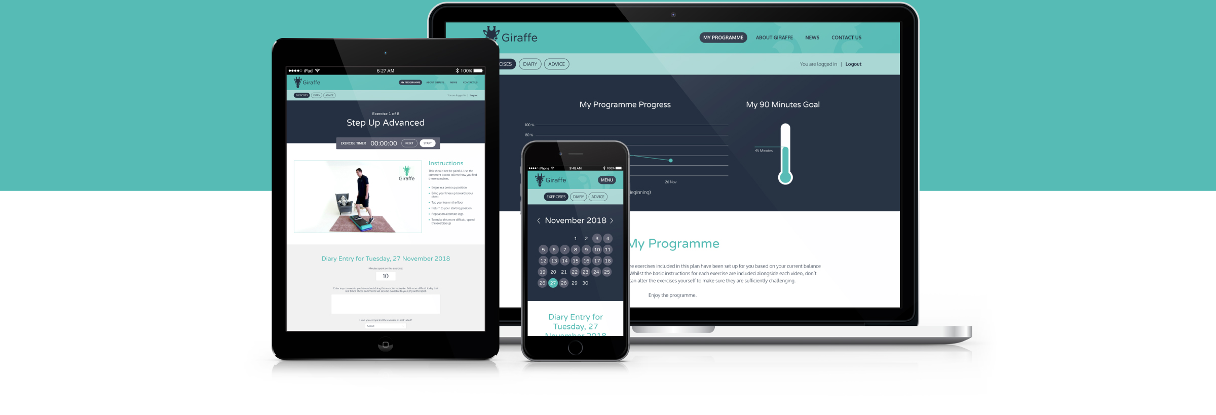 Giraffe Healthcare’s online physiotherapy and podiatry platform, is an evidence-based product that has been developed by experienced clinical and research/academic therapists working closely with patient groups, users and clinicians. Providing exercise programmes through the platform improves patient adherence and thus clinical outcomes. From a service perspective, the Giraffe platform has the potential to increase patient throughput and reduce waiting lists.